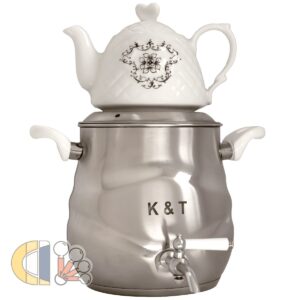 فقط یه چایی مشتی که میتونه بعد از یک روز کاری خسته گی آدمو در کنه. لازمه یک چای خیلی خوب داشتن وسایل اونه. مهمترین بخشش داشتن یک کتری و قوری خوبه. ست کتری و قوری کی اند تی علاوه بر داشتن کیفیت خیلی خوبشون که از جنس استیل ضد زنگ نگیر هستن ظاهر زیبایی هم دارند. که بودنشون تو آشپزخونه علاوه بر کاراییشون زیبایی خوبی هم به آشپزخانه شما میدن. کتری قوری های با کیفیت K&T گارانتی خیلی خوبی هم دارند. و از خریدشون خیالتون راحت باشه. دستگیره کتری و قوری های کی اس تی از بهترین مواد هستن. جنس دستهها از باکالیت نسوز است که باعث سهولت در استفاده میشود. جنس دسته استیل زیبایی دو جندانی به کتری و قوری میدهد و دسته ها داغ نمی شود.