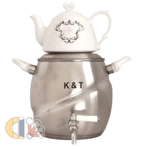 فقط یه چایی مشتی که میتونه بعد از یک روز کاری خسته گی آدمو در کنه. لازمه یک چای خیلی خوب داشتن وسایل اونه. مهمترین بخشش داشتن یک کتری و قوری خوبه. ست کتری و قوری های کی اس تی علاوه بر داشتن کیفیت خیلی خوبشون که از جنس استیل ضد زنگ نگیر هستن ظاهر زیبایی هم دارند. که بودنشون تو آشپزخونه علاوه بر کاراییشون زیبایی خوبی هم به آشپزخانه شما میدن. کتری قوری های با کیفیت K&T گارانتی خیلی خوبی هم دارند. و از خریدشون خیالتون راحت باشه. دستگیره کتری و قوری های کی اس تی از بهترین مواد هستن. جنس دستهها از باکالیت نسوز است که باعث سهولت در استفاده میشود. جنس دسته استیل زیبایی دو جندانی به کتری و قوری میدهد و دسته ها داغ نمی شود.